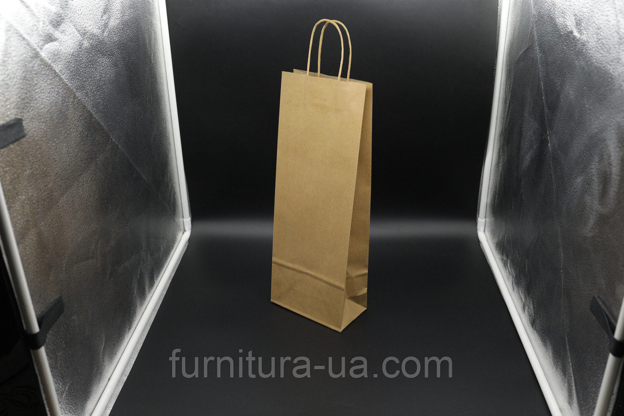 Одноразові паперові пакети з крафтового паперу з ручками 12х36х9см (ID