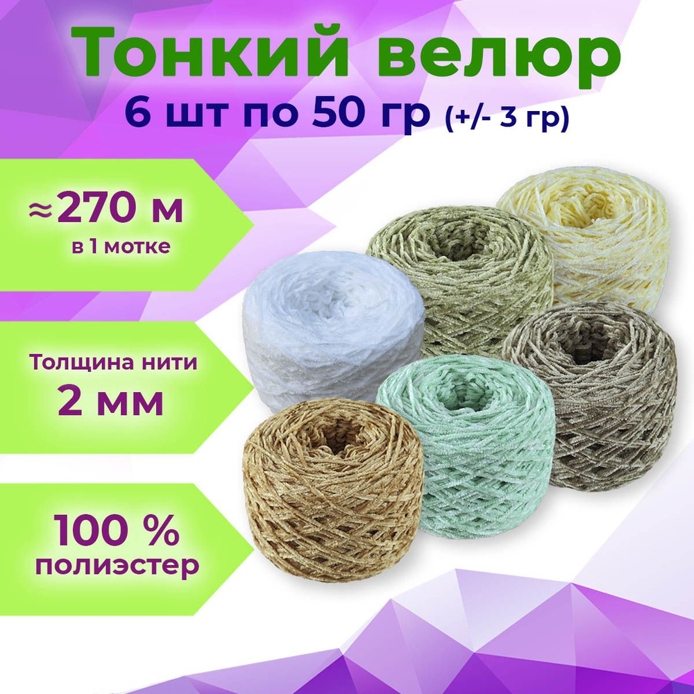 Тонкий бобинный велюр 2 мм для вязания игрушек / велюровая пряжа