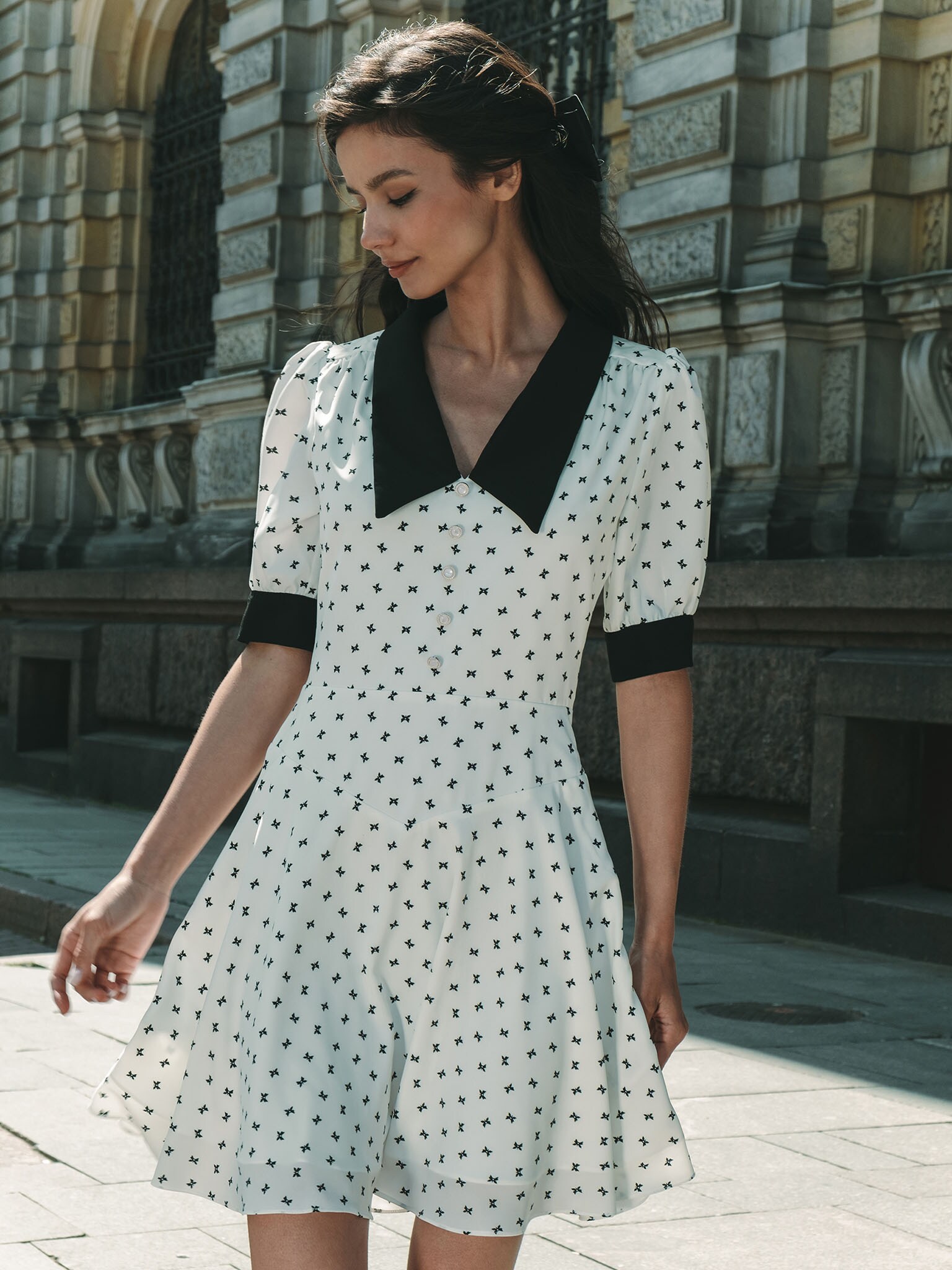Платье мини с цветочным принтом и контрастным воротником :: LICHI