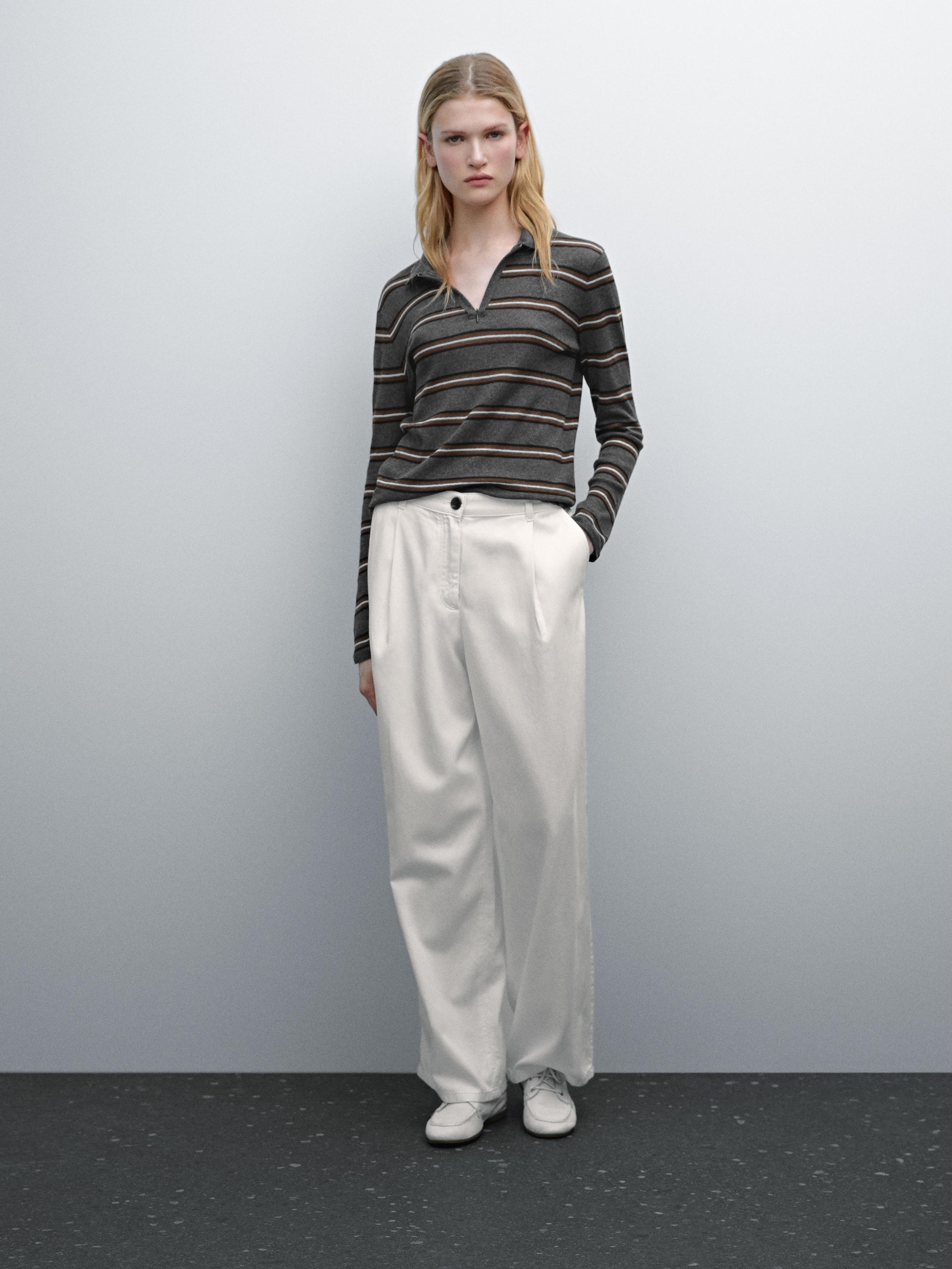 Свитер в полоску с воротником поло · Серый Меланжевый · Майки И Поло