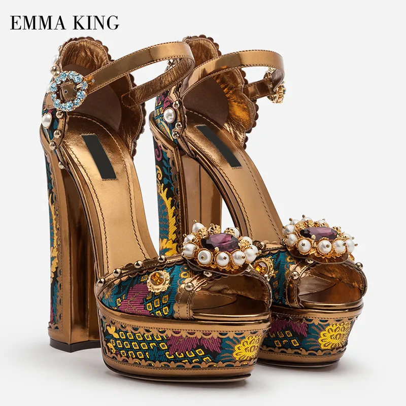 Роскошный синий Стразы, украшенные золотыми кожаные сандалии на не